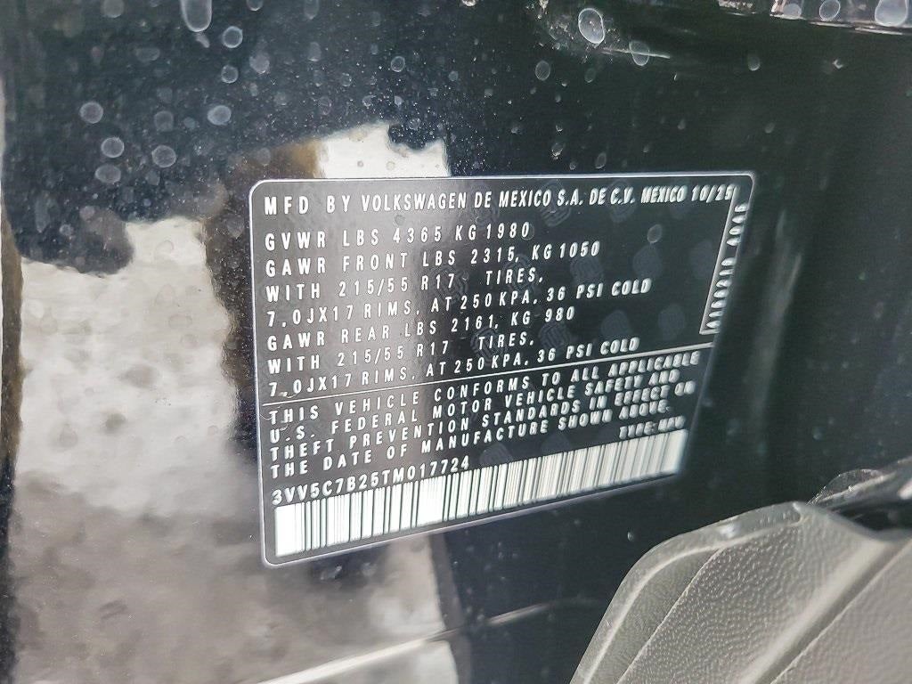 KEY FEATURES INCLUDE: 4-Wheel Disc Brakes, 6 Speakers, ABS brakes, Active Blind Spot Monitor, Air Conditioning, Alloy wheels, AM/FM radio, Auto High-beam Headlights, Brake assist, Bumpers: body-color, Cloth Seating Surfaces, Compass, Delay-off headlights, Driver door bin, Driver vanity mirror, Dual front impact airbags, Dual front side impact airbags, Electronic Stability Control, Emergency communication system: VW Car-Net Safe & Secure 5-year, Extended Range Remote Engine Start, Exterior Parking Camera Rear, Front anti-roll bar, Front Bucket Seats, Front Center Armrest, Front reading lights, Front Strut Rear Torsion Beam Suspension, Front wheel independent suspension, Fully automatic headlights, Heated steering wheel, Illuminated entry, Leather Shift Knob, Low tire pressure warning, Occupant sensing airbag, Outside temperature display, Overhead airbag, Overhead console, Panic alarm, Passenger door bin, Passenger vanity mirror, Power door mirrors, Power steering, Power windows, Radio data system, Radio: MIB3 Composition Color AM/FM, Rain sensing wipers, Rear anti-roll bar, Rear seat center armrest, Rear window defroster, Rear window wiper, Remote keyless entry, Rubber Mats Kit, Speed control, Speed-sensing steering, Split folding rear seat, Spoiler, Steering wheel mounted audio controls, Tachometer, Telescoping steering wheel, Tilt steering wheel, Traction control, Trip computer, Variably intermittent wipers, VW Care, and Wheels: 17 Dark Silver Painted Alloy. Price includes: $500 - Customer Bonus. Exp. 02/02/2026