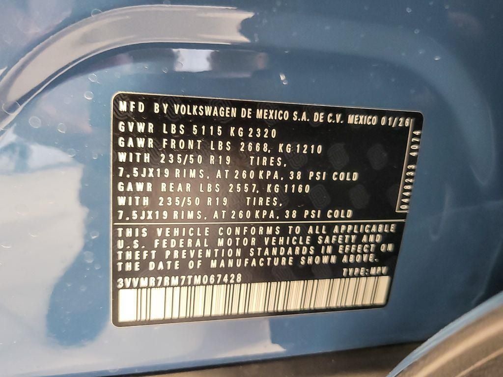 KEY FEATURES INCLUDE: Panoramic Sunroof Package, AWD, 4-Wheel Disc Brakes, 4-Wheel Independent Suspension, 7 Speakers, ABS brakes, Air Conditioning, Alloy wheels, AM/FM radio: SiriusXM with 360L, Auto High-beam Headlights, Auto-dimming Rear-View mirror, Automatic temperature control, Brake assist, Bumpers: body-color, Compass, Delay-off headlights, Driver door bin, Driver vanity mirror, Dual front impact airbags, Dual front side impact airbags, Electronic Stability Control, Emergency communication system, Exterior Parking Camera Rear, Four wheel independent suspension, Front anti-roll bar, Front Bucket Seats, Front Center Armrest, Front dual zone A/C, Front reading lights, Fully automatic headlights, Heated door mirrors, Heated Front Seats, Heated front seats, Illuminated entry, Knee airbag, Leather Shift Knob, Low tire pressure warning, Occupant sensing airbag, Outside temperature display, Overhead airbag, Overhead console, Panic alarm, Passenger door bin, Passenger vanity mirror, Perforated V-Tex Leatherette Seating Surfaces, Power door mirrors, Power driver seat, Power Liftgate, Power steering, Power windows, Radio data system, Rain sensing wipers, Rear anti-roll bar, Rear reading lights, Rear seat center armrest, Rear side impact airbag, Rear window defroster, Rear window wiper, Remote keyless entry, Security system, Speed control, Speed-sensing steering, Split folding rear seat, Spoiler, Steering wheel mounted audio controls, Tachometer, Telescoping steering wheel, Tilt steering wheel, Traction control, Trip computer, Turn signal indicator mirrors, Variably intermittent wipers, VW Care, and Wheels: 19 2-Tone Machined Alloy. Price includes: $1000 - Customer Bonus. Exp. 04/30/2026